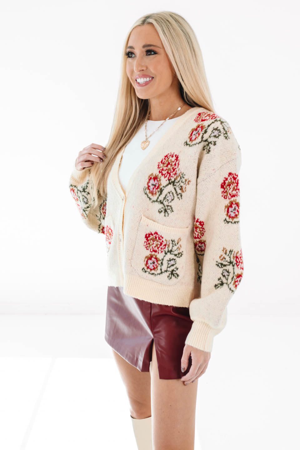 This cozy cream cardigan is blooming with charm thanks to its sweet red floral embroidery! With its slouchy sleeves and vintage-inspired vibe, it’s the perfect layer for everything from coffee runs to countryside strolls. Soft, cheerful, and effortlessly cute—it’s basically a warm hug you can wear!